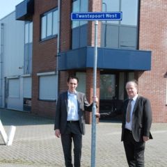 De vierde vestiging van technische dienstverlener Hollander Techniek is onlangs in gebruik genomen aan de Twentepoort West in Almelo, daarbij afgebeeld Erik Hollander (links) en Gerard Velderman (rechts).