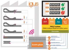 Om data van machines en systemen centraal te kunnen evalueren, presenteert Fanuc nu haar open industriële IoT platform genaamd "FIELD system". Het systeem kan productiemachines van alle fabrikanten met elkaar verbinden met behulp van een lokale netwerk topologie, waardoor een uitgebreide data-analyse mogelijk is van de hele procesketen. In deze infrastructuur worden apps van Fanuc en van externe leveranciers gebruikt. Nu heeft igus een smart plastics app voor het nieuwe systeem ontwikkeld. De app kan door onderhoudspersoneel worden gebruikt voor het bewaken van de conditie van hun igus componenten, zoals bijvoorbeeld kabelrupsen en kabels en hun onderhoudswerkzaamheden tijdig plannen.
